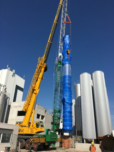 Luchtbehandelingskast stapelen met 2 Hoeflon C6 minihijskranen