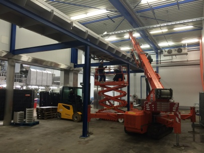 Inpandige montage van staalconstructie met minihijskraan Hoeflon C6.