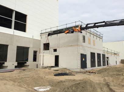 Ook met weinig ruimte weten wij raad! Inpandige montage van prefab beton met 16 ton JMG en Hoeflon C30e compactkraan